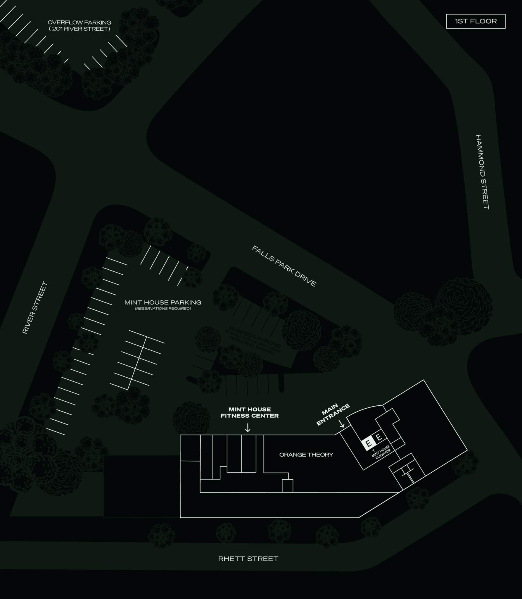 The primary parking lot is located directly in front of the building at the intersection of River St. & Falls Park Dr. Guests should park only in general, unmarked spaces. Spaces labeled “Reserved” or “2-Hour Parking” are not permitted for overnight use.